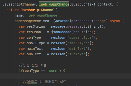 아래와 같이 JavascriptChannel를 작성해줍니다.